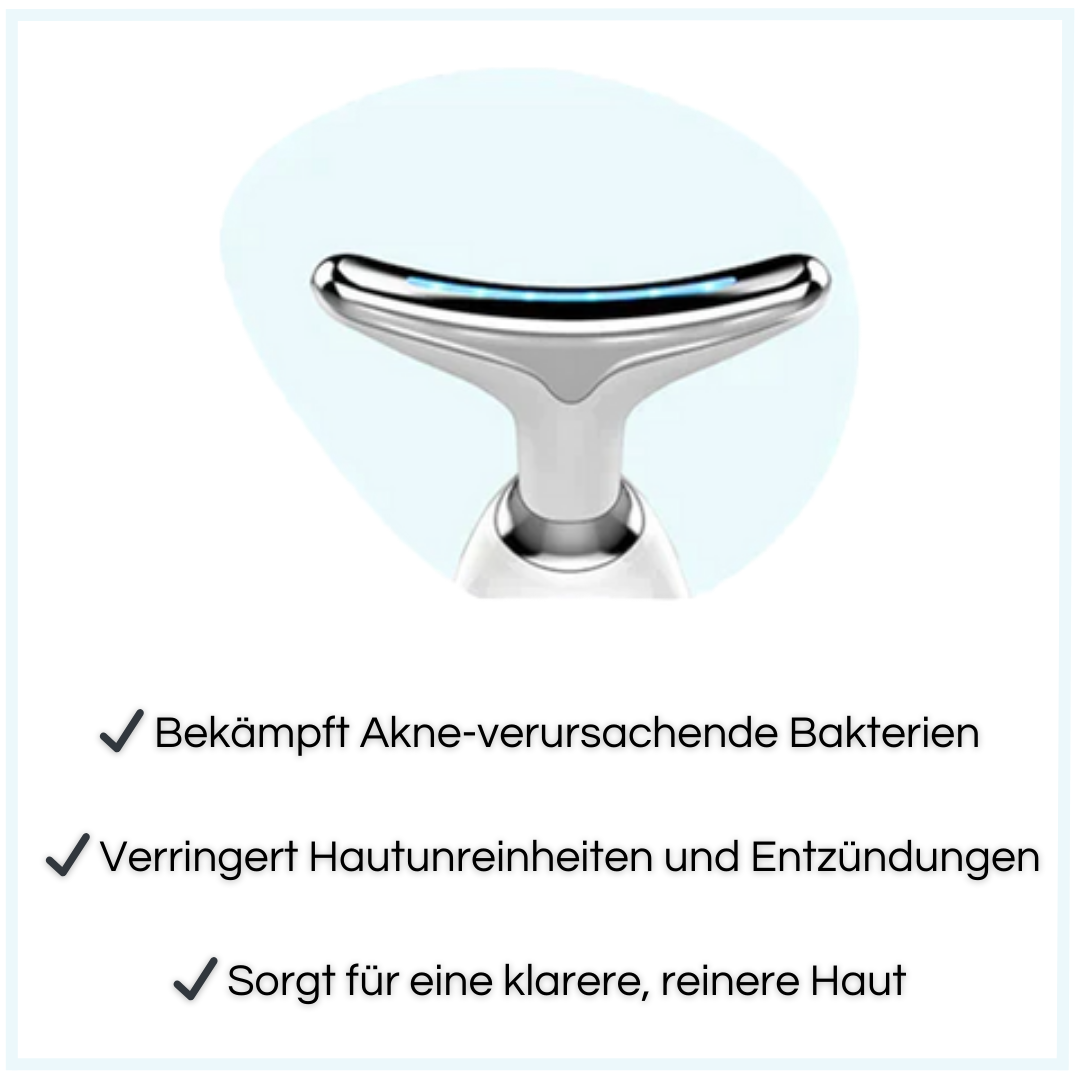 LumiSkin ist ein Gesichtsmassagegerät, das mit LED-Lichttherapie arbeitet, um deine Haut zu verjüngen und zu pflegen. Es hilft, Falten zu reduzieren und die Haut zu straffen.